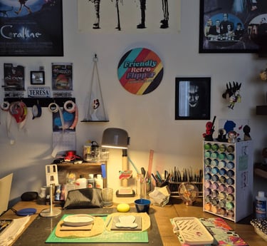 Handmade ceramics and hand-painted pottery pieces inspired by nostalgic and pop culture favorites.
